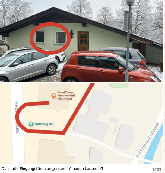 Unser FoodCoop Abhol- Laden ist übersiedelt. Wir haben ab 1.1.2026 von der Statdgemeinde einen Raum im ehemaligen Musikerheim zur Nutzung bekommen. Damit ist mehr Platz für unsere Foodcoop vorhanden.